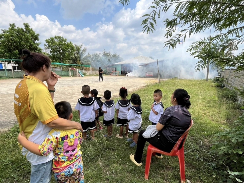 นายสำเริง รักษา นายก องค์การบริหารส่วนตำบลวังหมี มอบหมาย กองสาธารณสุขและสิ่งแวดล้อม องค์การบริหารส่วนตำบลวังหมี พร้อมด้วยเจ้าหน้าที่ องค์การบริหารส่วนตำบลวังหมี ลงพื้นที่พ่นหมอกควันและใส่ทรายอะเบทกำจัดลูกน้ำยุงลาย เพื่อป้องกันโรคไข้เลือดออก ร่วมกับ โรงพยาบาลส่งเสริมสุขภาพตำบลวังไทร ผู้นำชุมชน และอสม.ในพื้นที่ ที่โรงเรียนวังหมีพิทยาคมและบ้านคลองใบพัด หมู่ที่ 3