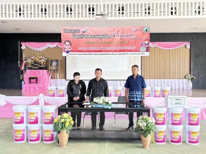 นายสำเริง รักษา นายกองค์การบริหารส่วนตำบลวังหมี พร้อมด้วยคณะผู้บริหารและเจ้าหน้าที่องค์การบริหารส่วนตำบลวังหมี ร่วมดำเนินงานตามโครงการป้องกันและควบคุมโรคไข้เลือดออกประจำปีงบประมาณ พ.ศ. 2569 โดยกองสาธารณสุขและสิ่งแวดล้อมองค์การบริหารส่วนตำบลวังหมี ณ อาคารอเนกประสงค์องค์การบริหารส่วนตำบลวังหมี