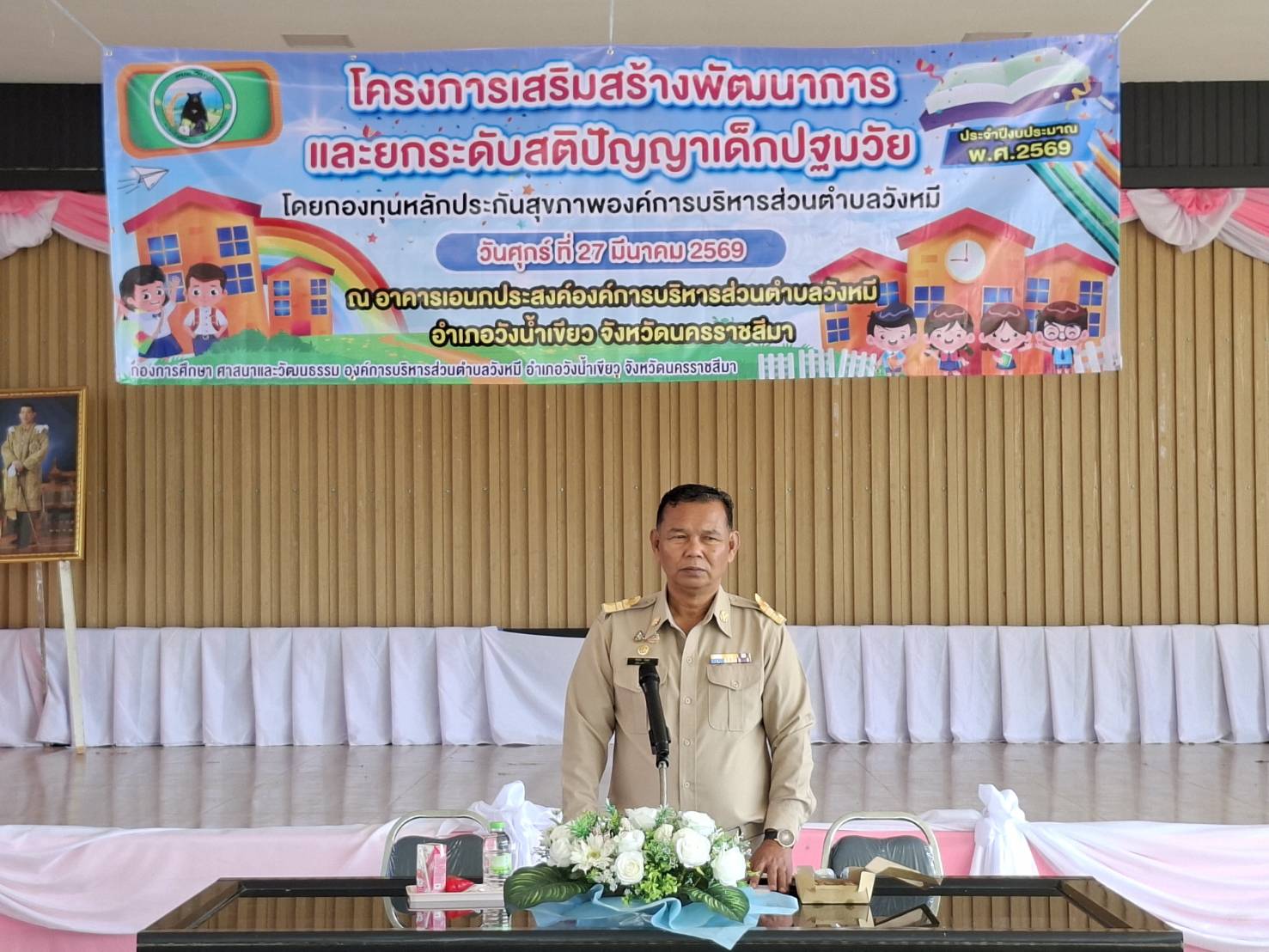 นายกสำเริง รักษา นายกองค์การบริหารส่วนตำบลวังหมี พร้อมด้วยคณะผู้บริหารและเจ้าหน้าที่องค์การบริหารส่วนตำบลวังหมี เข้าร่วมโครงการเสริมสร้างพัฒนาการและยกระดับสติปัญญาเด็กปฐมวัย ประจำปีงบประมาณ พ.ศ.2569 ณ อาคารอเนกประสงค์องค์การบริหารส่วนตำบลวังหมี จัดทำโดยกองการศึกษา ศาสนาและวัฒนธรรมองค์การบริหารส่วนตำบลวังหมี สนับสนุนโดยกองทุนหลักประกันสุขภาพองค์การบริหารส่วนตำบลวังหมี