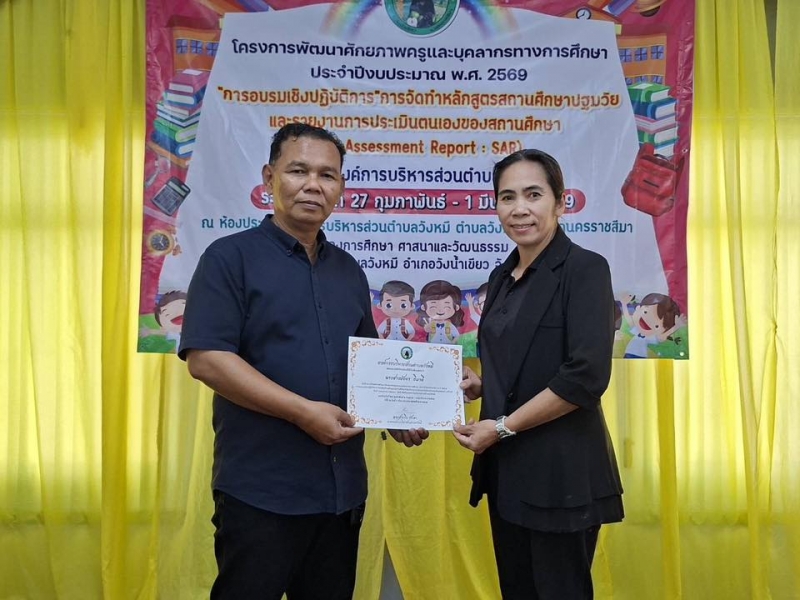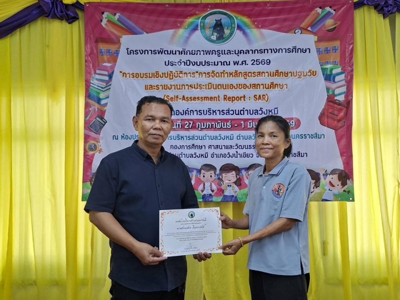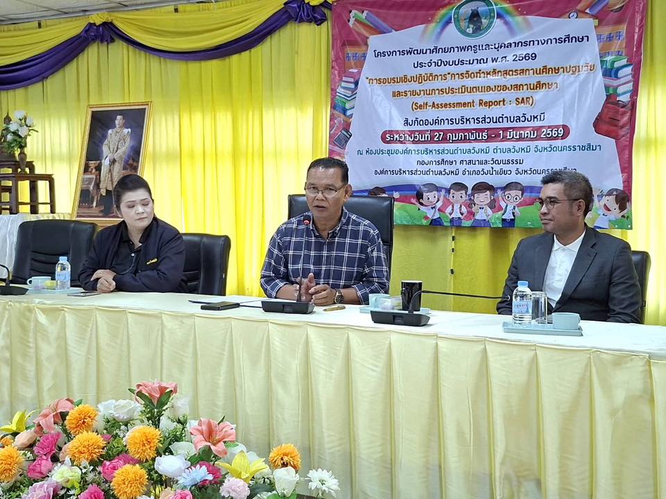 นายสำเริง รักษา นายกองค์การบริหารส่วนตำบลวังหมี พร้อมด้วยคณะผู้บริหารและเจ้าหน้าที่องค์การบริหารส่วนตำบลวังหมี ร่วมดำเนินงานตามโครงการพัฒนาคักยภาพครูและบุคลากรทางการศึกษาประจำปีงบประมาณ พ.ศ.2569 การอบรมเชิงปฎิบัติการ การจัดทำหลักสูตรสถานศึกษาปฐมวัยและกาารายงานการประเมินตนเองของสถานศึกษาระหว่างวันที่ 27 ก.พ.-1 มี.ค. 2569 ณ ห้องประชุมองค์การบริหารส่วนตำบลวังหมี