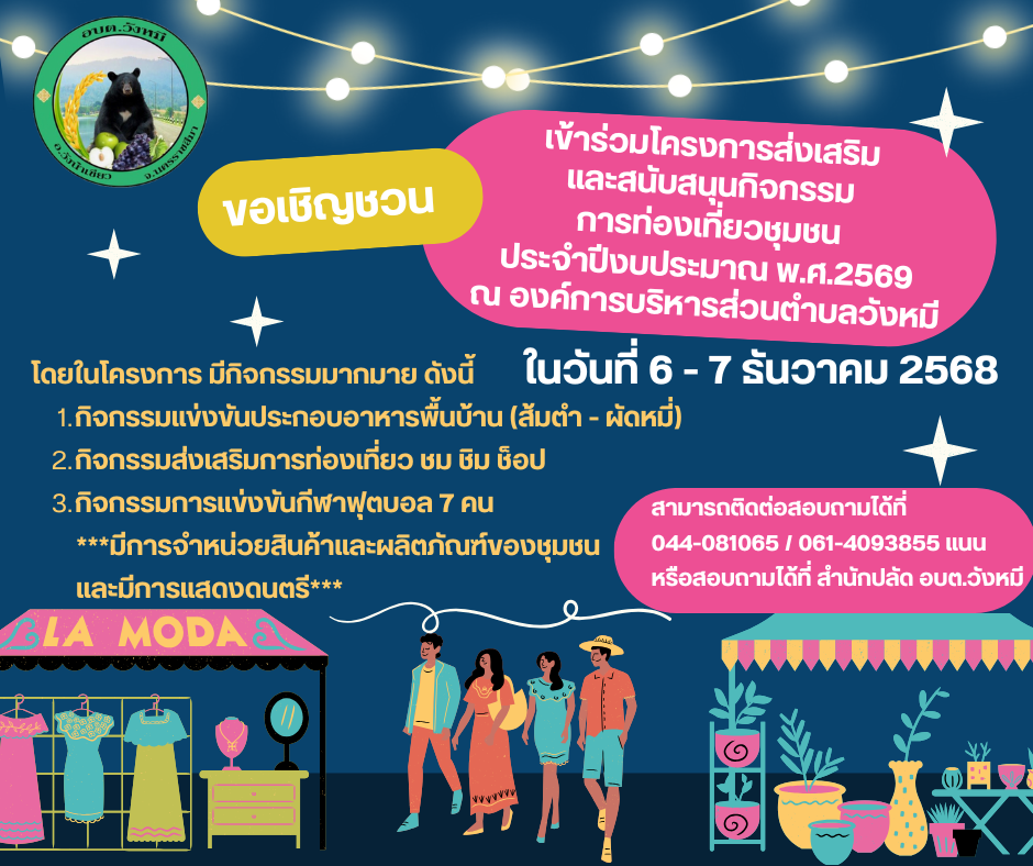 ขอเชิญชวนเข้าร่วมโครงการเทศกาลของดีวังหมี ประจำปีงบประมาณ พ.ศ.2569 |