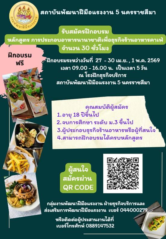 การรับสมัครฝึกอบรมหลักสูตร การประกอบอาหารนานาชาติเพื่อธุรกิจร้านอาหารคาเฟ่และหลักสูตรการประกอบอาหารเพื่อสุขภาพ |