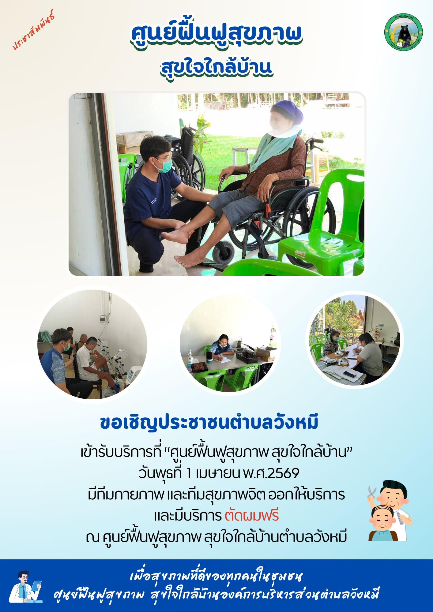 ขอเชิญประชาชนตำบลวังหมี เข้ารับบริการที่ “ศูนย์ฟื้นฟูสุขภาพ สุขใจใกล้บ้าน” ในวันพุธ ที่ 18 มีนาคม พ.ศ.2569 |