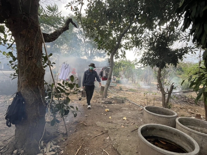 นายสำเริง รักษา นายก องค์การบริหารส่วนตำบลวังหมี มอบหมาย กองสาธารณสุขและสิ่งแวดล้อม องค์การบริหารส่วนตำบลวังหมี พร้อมด้วยเจ้าหน้าที่ องค์การบริหารส่วนตำบลวังหมี ลงพื้นที่พ่นหมอกควันและใส่ทรายอะเบทกำจัดลูกน้ำยุงลาย เพื่อป้องกันโรคไข้เลือดออก ร่วมกับ โรงพยาบาลส่งเสริมสุขภาพตำบลวังไทร ผู้นำชุมชน และอสม.ในพื้นที่ ที่โรงเรียนวังหมีพิทยาคมและบ้านคลองใบพัด หมู่ที่ 3