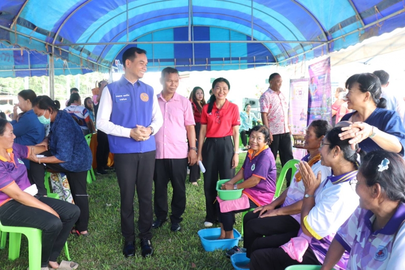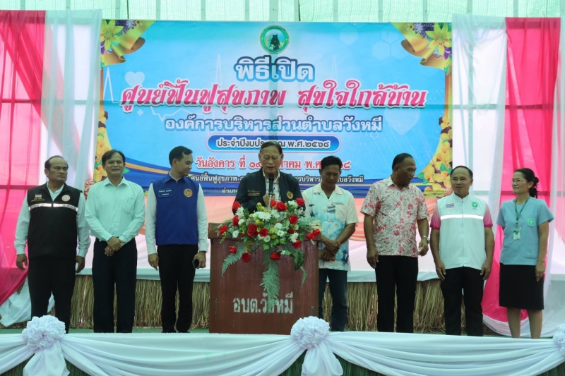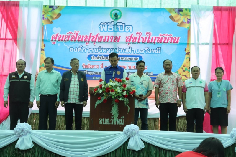 นายสำเริง รักษา นายก อบต.วังหมี พร้อมด้วยคณะผู้บริหาร สมาชิกสภา อบต.วังหมี และเจ้าหน้าที่ อบต.วังหมี ร่วมพิธีเปิด ศูนย์ฟื้นฟูสุขภาพ สุขใจใกล้บ้าน องค์การบริหารส่วนตำบลวังหมี ประจำปีงบประมาณ พ.ศ.2568