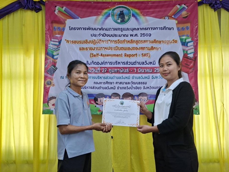 นายสำเริง รักษา นายกองค์การบริหารส่วนตำบลวังหมี พร้อมด้วยคณะผู้บริหารและเจ้าหน้าที่องค์การบริหารส่วนตำบลวังหมี ร่วมดำเนินงานตามโครงการพัฒนาคักยภาพครูและบุคลากรทางการศึกษาประจำปีงบประมาณ พ.ศ.2569 การอบรมเชิงปฎิบัติการ การจัดทำหลักสูตรสถานศึกษาปฐมวัยและกาารายงานการประเมินตนเองของสถานศึกษาระหว่างวันที่ 27 ก.พ.-1 มี.ค. 2569 ณ ห้องประชุมองค์การบริหารส่วนตำบลวังหมี