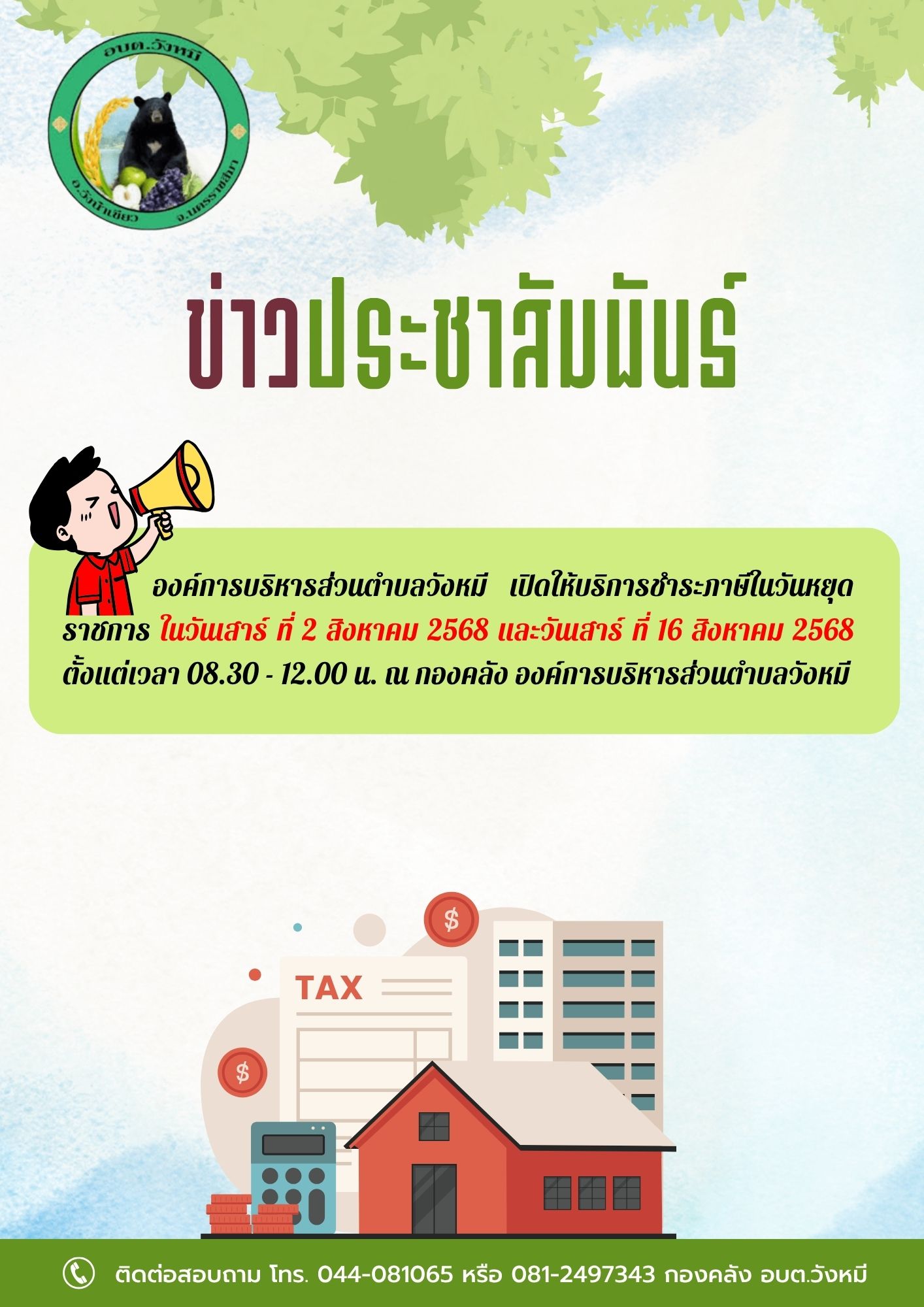 เรื่อง การออกให้บริการรับชำระภาษีที่ดินและสิ่งปลูกสร้าง ภาษีป้าย ประจำปีงบประมาณ พ.ศ.2568 |