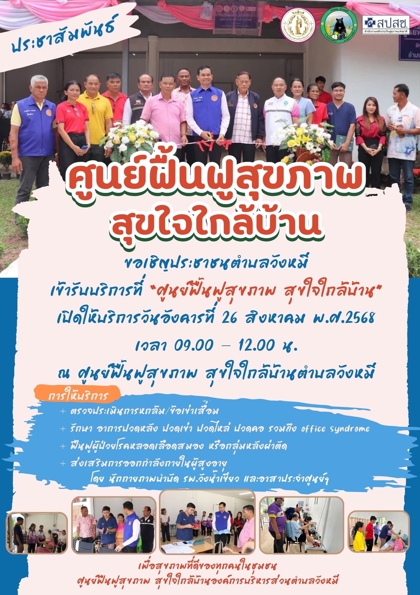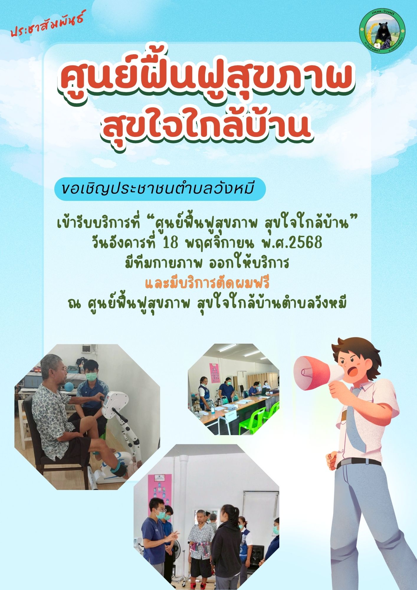 ขอเชิญประชาชนตำบลวังหมี เข้ารับบริการที่ ศูนย์ฟื้นฟูสุขภาพ สุขใจใกล้บ้าน วันพุธที่ 15 ตุลาคม พ.ศ.2568 |