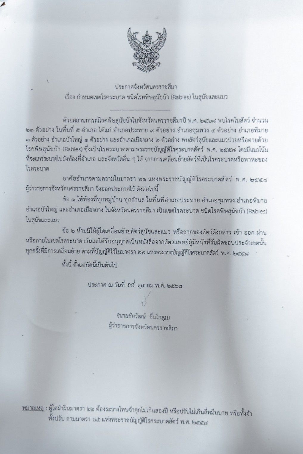 เรื่อง ประกาศกำหนดเขตโรคระบาดชนิดโรคพิษสุนัขบ้า(Rabies)ในสุนัขและแมว |