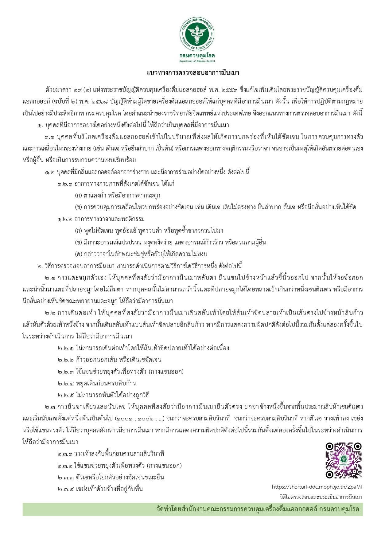 เรื่อง แนวทางการตรวจสอบอาการมึนเมา |