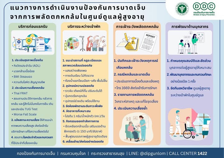 ประชาสัมพันธ์แนวทางการดำเนินงานป้องกันการบาดเจ็บจากการพลัดตกหกล้มในศูนย์ดูแลผู้สูงอายุ |